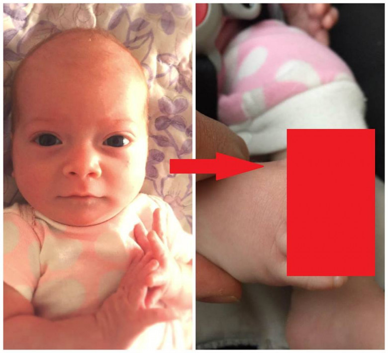 В тот день на нее напал приступ плача, и Скотт заметил, что у Молли поднимается температура. Взволнованный отец решил снять с нее носочки и увидел нечто ужасное. Молли – не первый ребенок пары, они уже воспитывают 3-летнюю дочь.