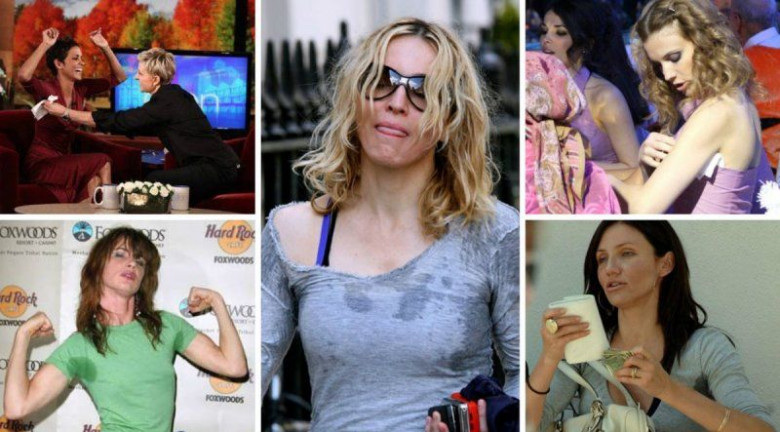 Но, почему-то эти публичные люди пожалели то ли денег, то ли своего времени, то ли вообще не знают о существовании специальных средств, защищающих от пота. Ясно одно, выходить в таком виде на публику они совсем не стесняются.