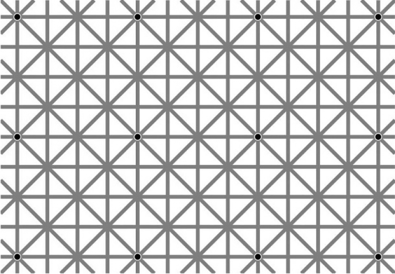 Посмотри внимательно на картинку с оптической иллюзией и скажи: сколько черных точек ты видишь?