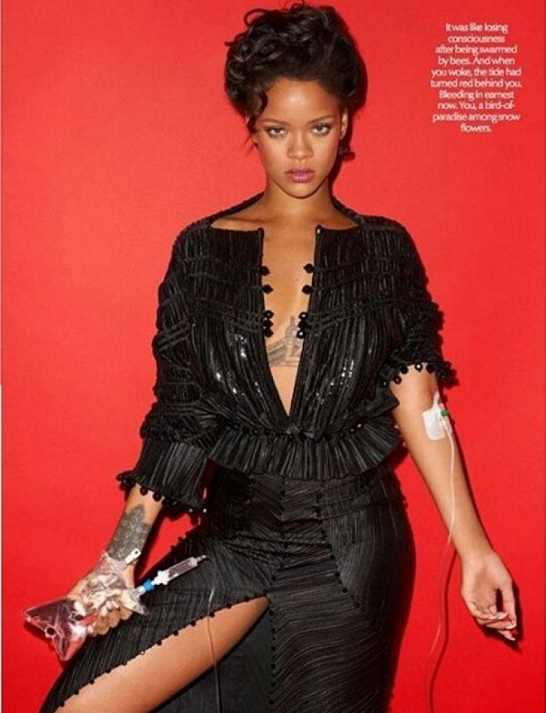 Примечательно, что на всех остальных фотографиях из этой серии, Рианна хоть и выглядит весьма сексуально, но такого откровенного обнажения уже не демонстрирует.