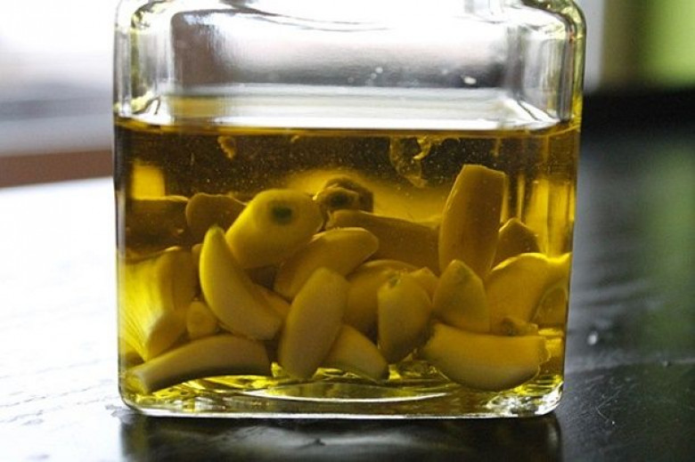 Измельчите чеснок и смешайте его со спиртом. Перелейте смесь в стеклянную бутылку. Через 10 дней, процедите жидкость и вылейте обратно в бутылку. Храните в холодильнике в течение еще 2 дней.
