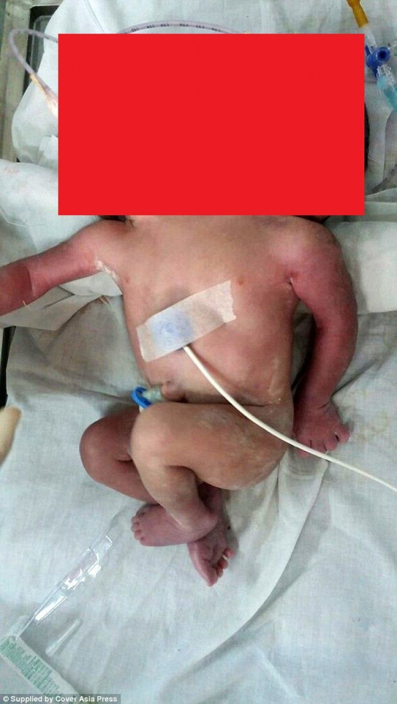 "Вчера в медицинском учреждении родился двухголовый ребенок", - сказал Нараян. - "Это был первый ребенок пары - скорее всего, поэтому они не ходили к врачу во время беременности и не соблюдали необходимые предосторожности. Беременность была полностью доношенной, мать чувствовала себя хорошо после операции, но у ребенка были проблемы с дыханием".
