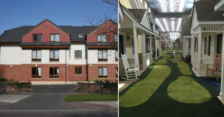 Это учреждение для содержания пожилых людей — дом престарелых под названием The Lantern of Chagrin Valley в Огайо — предназначен для проживания пациентов с деменцией и болезнью Альцгеймера. Внутри его дизайн похож на зеленую аллею, ведущую мимо маленьких домиков к полю для гольфа. Оказываясь здесь, чувствуешь себя в сороковых годах!