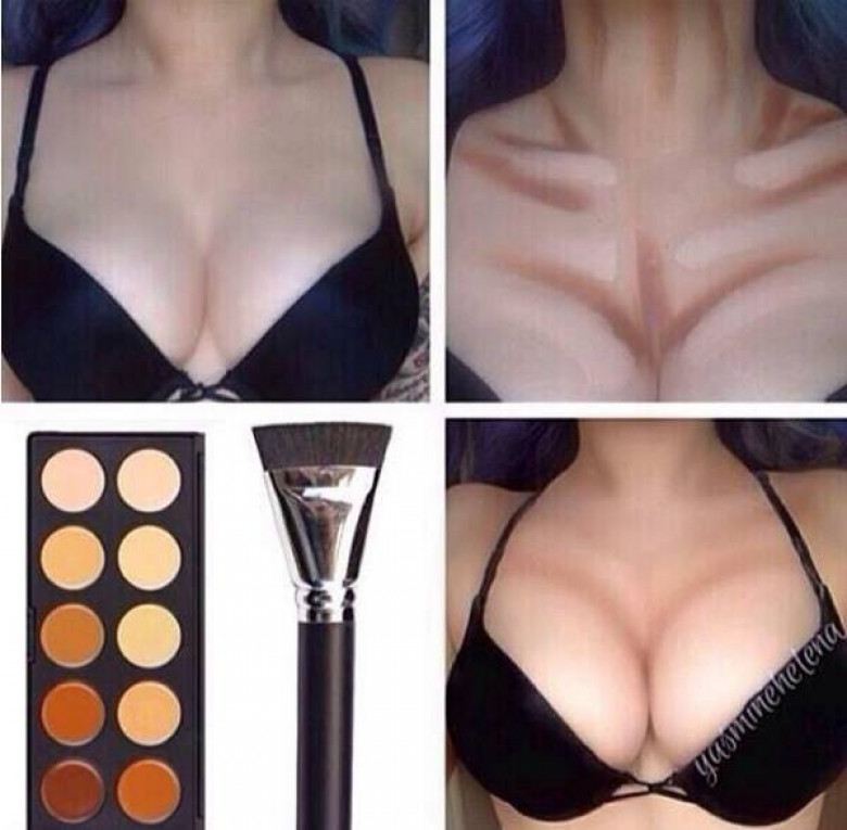 4. Кроме чертовски модного сегодня контуринга и лифчиков с пуш-апом, в вооружении у представительниц прекрасной половины человечества есть на вооружении несколько более простых приемов, чтобы сделать маленькую грудь больше. К примеру, можно надавить на грудь и приподнять ее руками. Так она будет казаться визуально округлой.