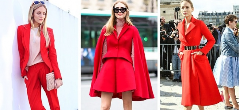 • Красный моно-лук — это очень элегантно. Даже красная помада — это не чересчур. А добавление всего одной детали белого или светло-розового цвета сделает ваш образ еще более современным.