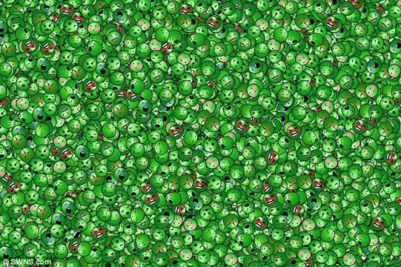 Среди этих горошин притаилась одна смеющаяся. А вы сможете ее отыскать?
