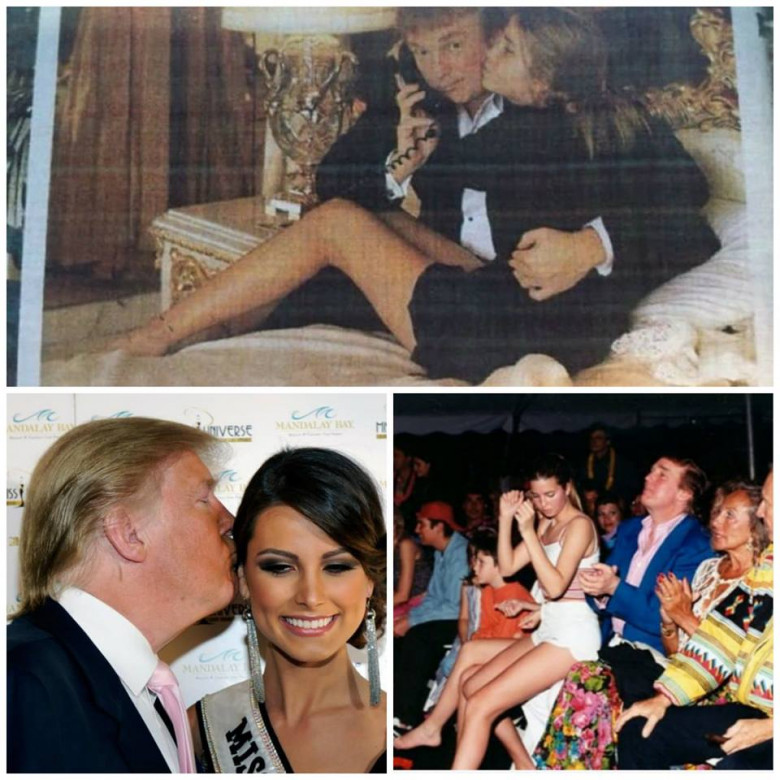 Здесь Трамп изображен с Мисс Вселенная 2009, Стефанией Фернандес из Венесуэлы, и явно пользуется своим положением мецената. Красавица стоически это терпит. Как терпели его выходки и другие участницы конкурсов красоты, проведение которых он спонсировал. Трамп любил заглянуть к девушкам в раздевалку, причем делал это в любой момент, чем очень смущал конкурсанток.