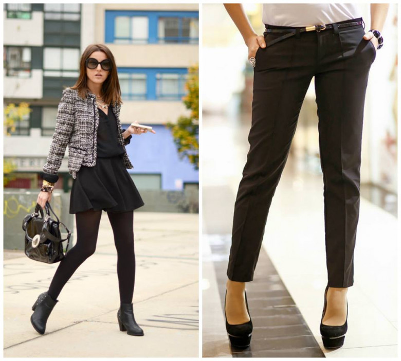 Костюм, пошитый из твида, заиграет более ярко в ансамбле с принтованными колготками.