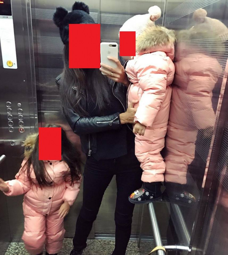 А вот за этот снимок многие осудили Оксану, зачем подвергать ребенка опасности, ради хорошей фотографии в лифте? Хотя мама и придерживает малышку рукой, но все - таки не стоило так рисковать.