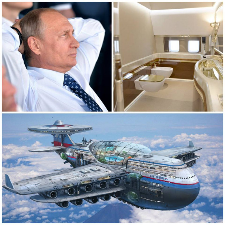 Вот как описал чудо авиатехники сайт http://ord-02.com под заголовком «Путину строят летающий позолоченный унитаз с ядерной кнопкой«: «В декабре Владимира Путина должна ждать обновка. Кому-то к новому году дарят шарик на ёлку, кому-то — ключи от машины, а президенту обещают новенький самолет.»