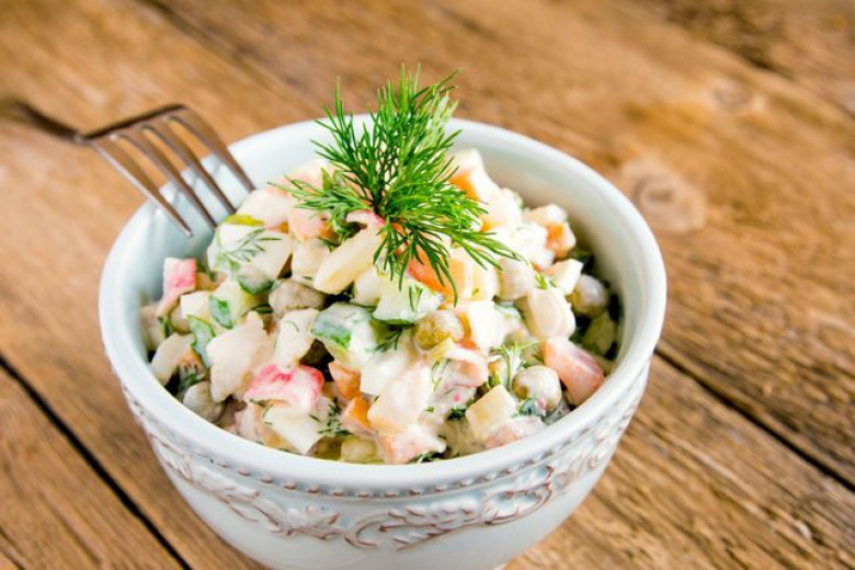 Не стоит заправлять оливье лишь одним майонезом. Конечно, очень удобно — просто выдавить содержимое из пакетика и заправить салат, но из-за этого блюдо получается тяжелым для желудка и чересчур сытным. Стоит разбавить майонез домашней сметаной или сливками, как это делали наши бабушки.