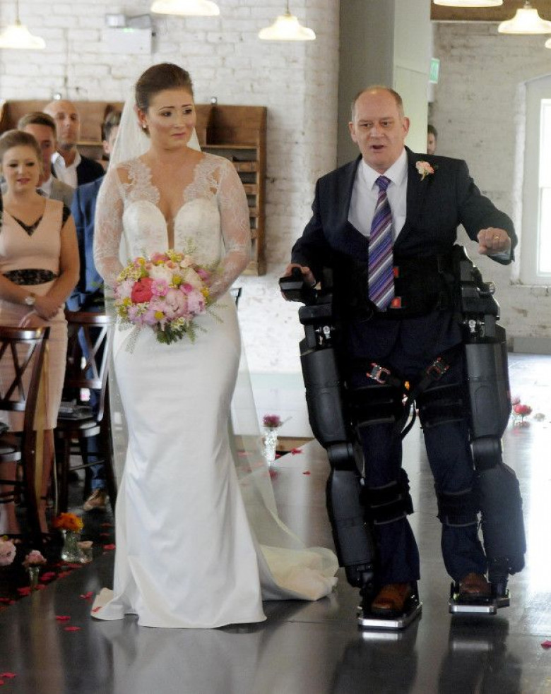 Парализованный отец провел свою дочь к алтарю в бионическом костюме