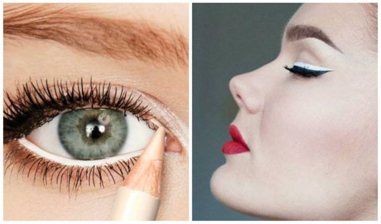 Белый карандаш, нанесенный на внутренние уголки глаз, придает сияние взгляду, а также меняет форму глаз, подчеркивая их миндалевидность.