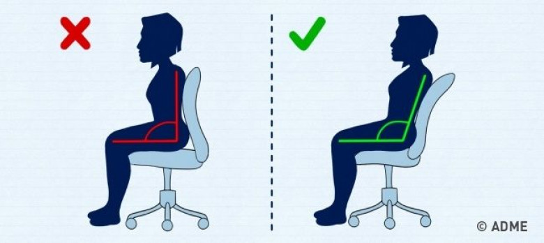 Правильная осанка — симметричное расположение всех органов. Позаботьтесь о своей спине — настройте правильно офисный стул и наклон монитора. Вот чек-лист: