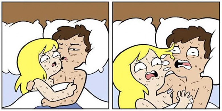 Из-за нестерпимой жары вы начинаете дико потеть, тела начинают прилипать друг к другу. Спать в таких условиях становится практически невыносимо.