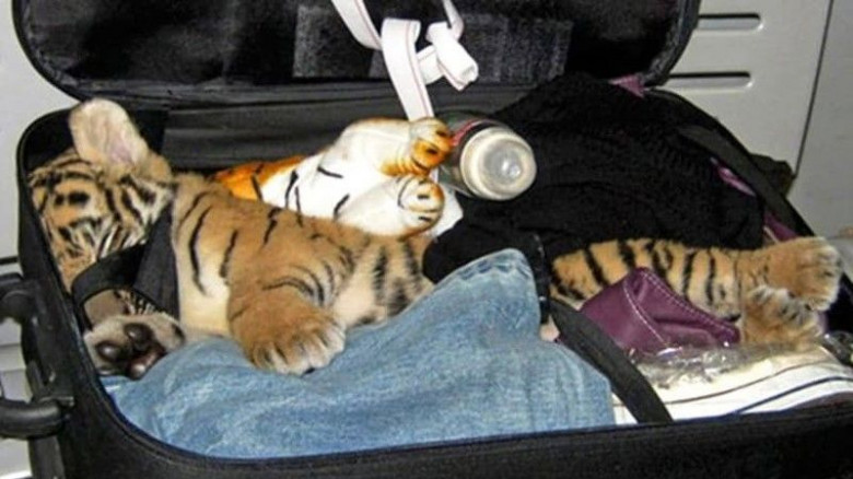 В 2010 году пассажирка, летевшая из Бангкока в Иран, попробовала провезти с собой живого тигренка. Она спрятала спящего зверька в сумке, полной игрушечных тигрят, надеясь, что так сможет его замаскировать. Конечно, это не удалось. Тигренок был возвращен на свободу.