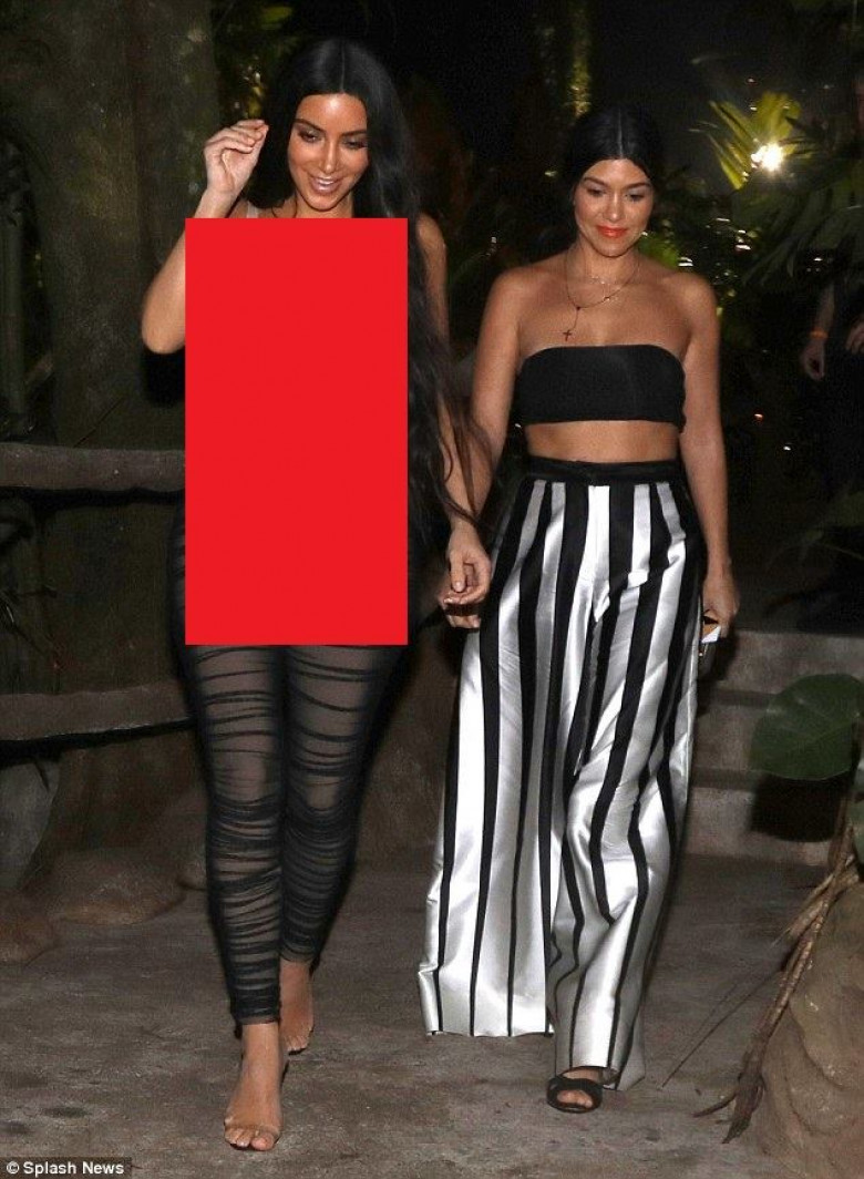 Sheer beauty! Kim Kardashian left little to the imagination in a nude-coloured top when she stepped out for dinner with sister Kourtney in Costa Rica