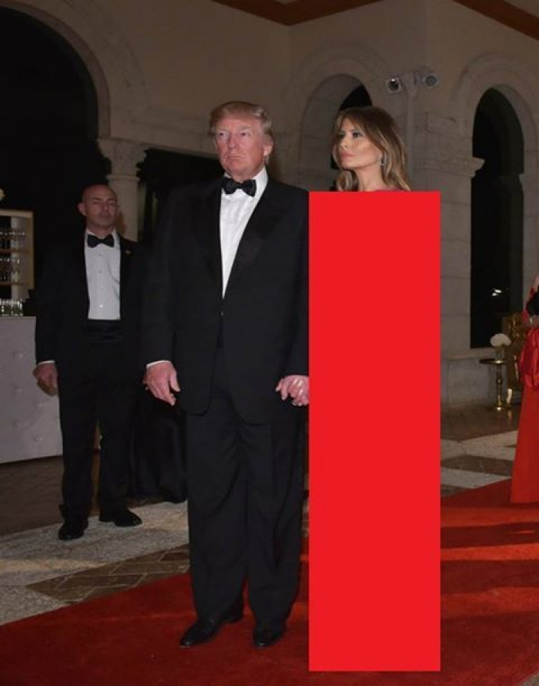 Облегающий силуэт наряда и глубокий V-образный вырез подчеркивали фигуру экс-супермодели. Платье Мелания дополнила лодочками в тон, а также серьгами и кольцом с изумрудами и бриллиантами.