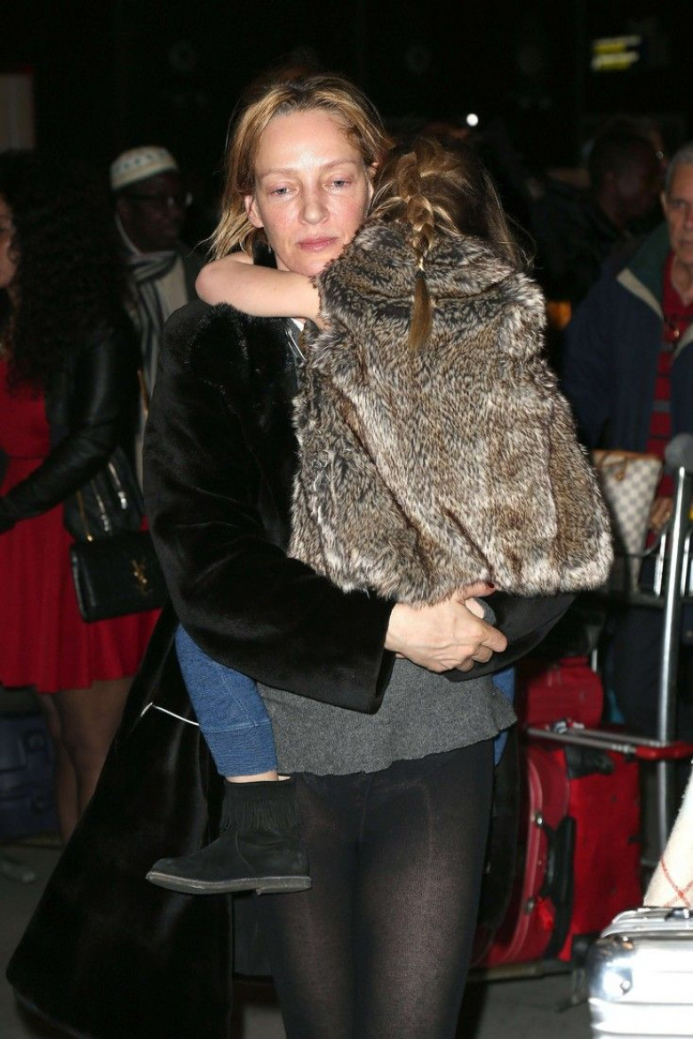 Ума Турман отправилась в полет в колготках и свитере, забыв про юбку (Фото)