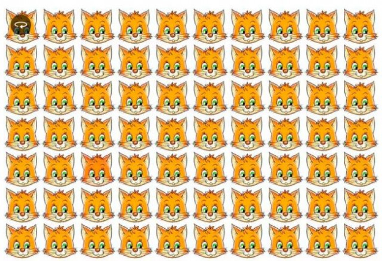 Как видите, задачка выдалась не из легких. Суть в том, что котенок действительно мало отличается от остальных. Вам следовало обратить внимание на их цвета. Если присмотреться, наш малыш явно выбивается из общей картинки!