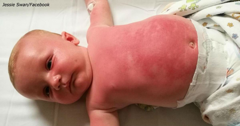 На его теле тут же появилась ужасная сыпь, и через два дня его госпитализировали.Мать, Джесси Суон, опубликовала фото своего малыша в соцсетях и особо подчеркнула: эти покраснения - именно от крема, а не от солнца, потому что под открытым солнцем дитя и не было.