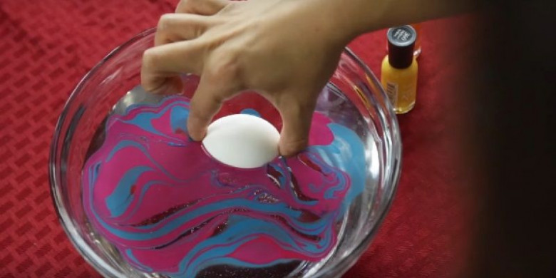 Она окунула яйцо в воду с лаком для ногтей. От результата невозможно глаз оторвать (Видео)