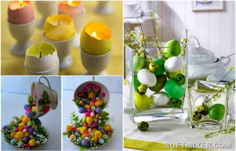 Всевозможные растения всегда ассоциируются со свежестью и весной, поэтому любые комнатные растения можно использовать для декора дома к празднику. Просто украсьте их веточки пенопластовыми яйцами, а в горшок положите несколько настоящих.