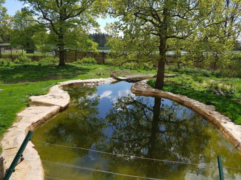 Амурские тигры Чингис и Белла обитают в тигрином вольере в британском сафари-парке, длина которого около 150 м. В нём все сделано для максимального удобства животных, но не учтен такой факт, что полосатый окрас тигров помогает им хорошо маскироваться. Поэтому кажется, что в вольере абсолютно никого нет, но это не совсем так.