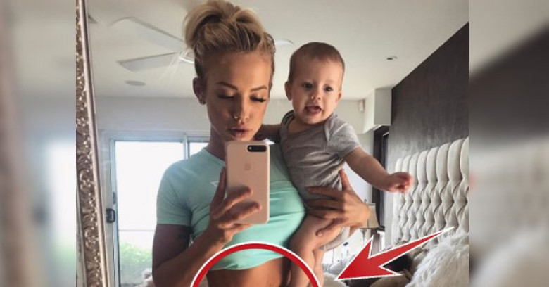 На фото заметно, что кожа Тэмми — в том месте, где ножка ребёнка касается её живота — осталась дряблой, чего нельзя заметить на других фотографиях.