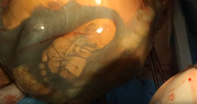 При такой сложной процедуре и мама, и ребёнок подвергаются высочайшему риску. Удаление плаценты может привести к неконтролируемому кровотечению, которое может закончиться летальным исходом. В целом операция длилась почти два часа.