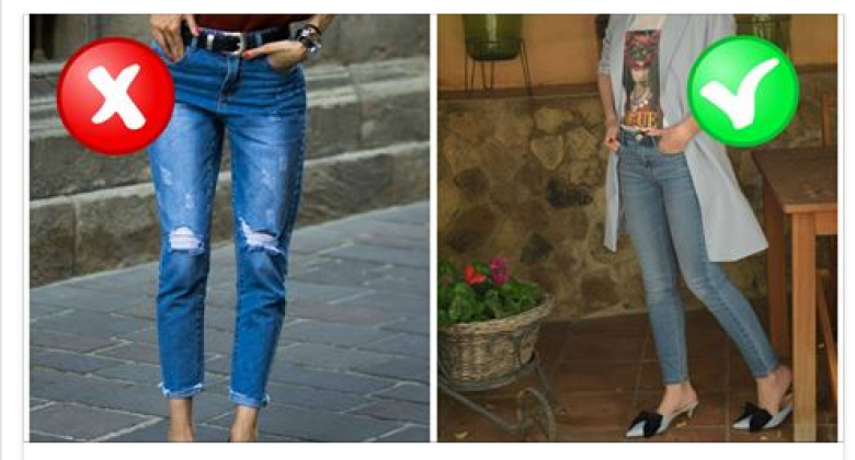 3. Допускаются синие джинсы с небольшими потертостями или слегка выбеленные, если позволяет ваша фигура. Необходимо учитывать, что такие потертости на джинсах могут привлекать внимание и полнить.