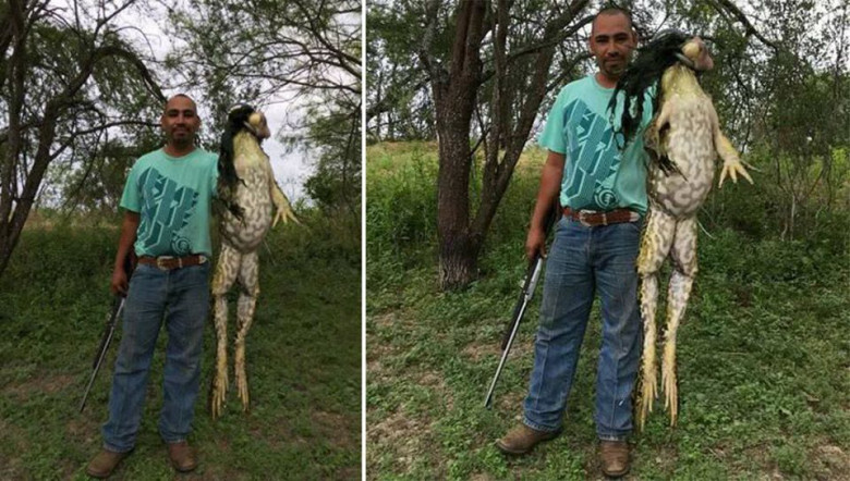 На фотографии отчетливо видно улыбающегося американца с аномально огромной добычей, которую он назвал Frogzilla (Жабозилла — прим.ред.).