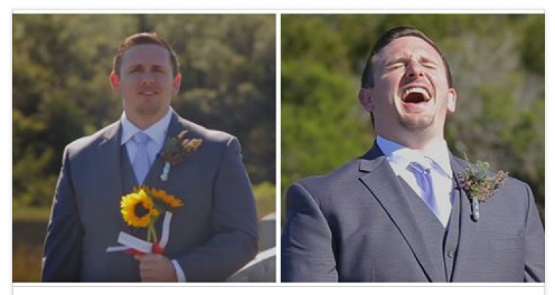 Когда оператор попросил жениха отвернуться, чтобы тот не видел приближение невесты, случилось нечто фантастическое! Когда парню разрешили повернуть свой взор к избраннице, он буквально поднимал челюсть с пола. Скажу вам лишь, что я хохотала и плакала одновременно. Чувству юмора невесты остается лишь позавидовать. Кажется, у этих ребят всё будет замечательно!
