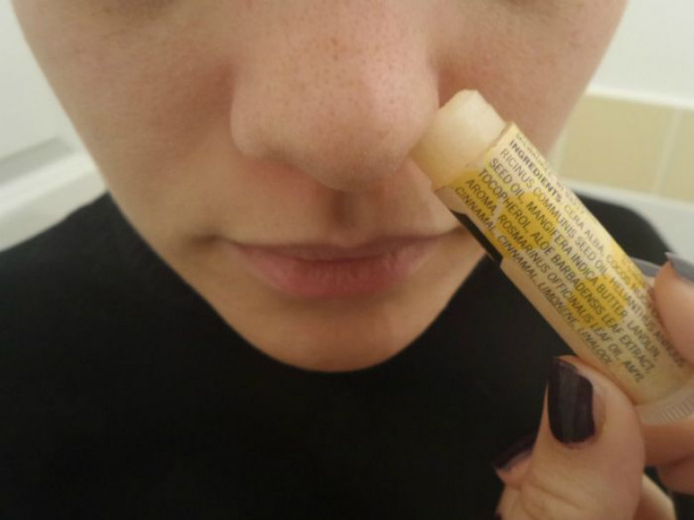 3. Наносите помаду на крылья носа, если они обветрились или отличаются сухостью. Наверняка вы замечали, что данный продукт более увлажняющий, чем любой крем.