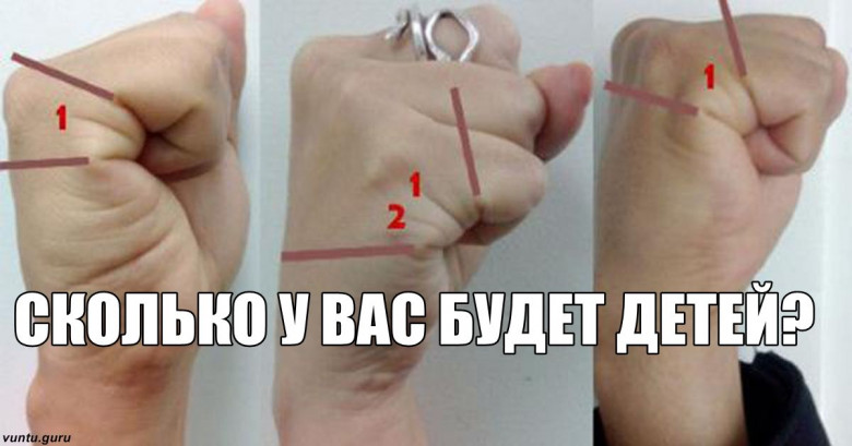 Количество линий на сгибе — это и есть количество ваших детей! Учтите: сгибы на фалангах мизинца не считаются, и линии должны быть чётко видимые — не пытайтесь высмотреть едва заметные морщинки.