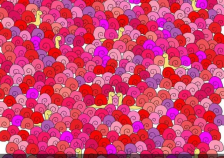 Предлагаем вам интересное задание. Вам нужно посмотреть на картинку и отыскать сердечко среди уймы улиток. Вперед, сделайте это как можно быстрее.