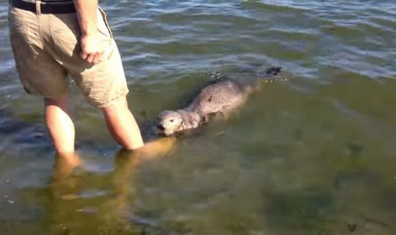 Парень, заметив у берега загадочное плавающее существо, бесстрашно шагнул в воду. В результате юноша подружился с невероятным симпатягой, при взгляде на морду которого так и хочется начать чесать его за ушком. Четвероногий красавец оказался морской выдрой, животным крайне мирным и ласковым.
