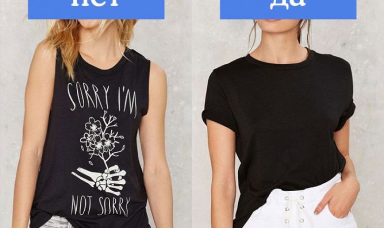 Пусть футболка с названием местной футбольной команды или музыкального фестиваля 2006 года останется твоей домашней одеждой или просто памятным сувениром — в качестве обычной одежды она будет смотреться как минимум странно.