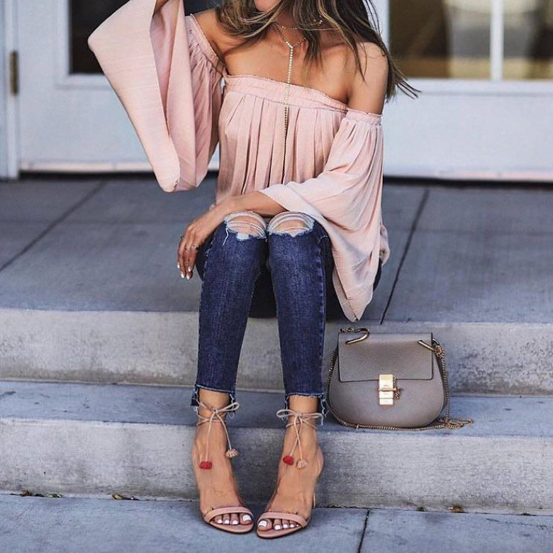 Плотный хлопок, открытые плечи, вышивка с цветочным орнаментом и рукава-фонарики — подобная блуза обязательно должна быть в гардеробе каждой модницы. Ее можно носить как с брюками-дудочками и туфлями на высоком каблуке, так и с длинной юбкой макси, сандалиями и соломенной шляпой.