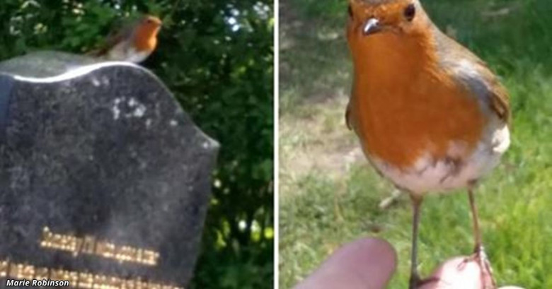 Робинсон стала снимать птицу на видео, а та присела на надгробие. Когда женщина вытянула руку, птица подлетела к ней, как будто что-то поняла, и села на палец!