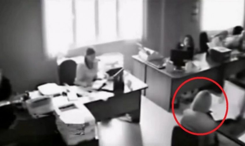 Девушка со снимка выше спокойно работала на своем месте в офисе. Ничто не предвещало беды, когда она вдруг встала с места.