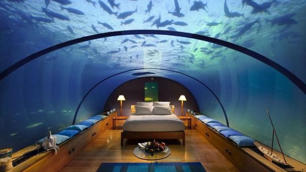 С 2011 года на острове Фиджи работает необычный отель. Его “изюминка” заключается в том, что он находится под водой. На глубине 15 метров расположены обычные и королевские номера.