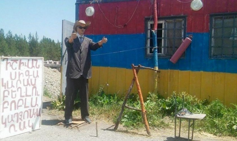 На севанской трассе манекен предлагает рыбу характерным жестом