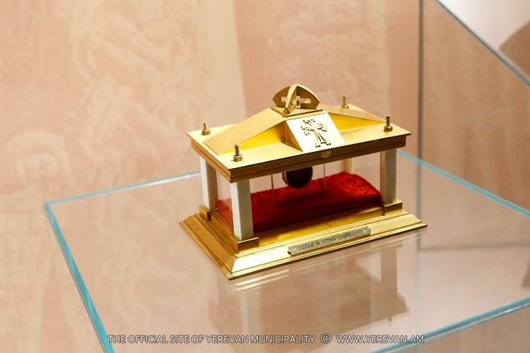 В завершение встречи епископ Езрас Нерсисян подарил мэру Еревану Тарону Маргаряну медаль, посвященную 300-летию создания Российской и Ново-Нахичеванской епархии ААЦ.