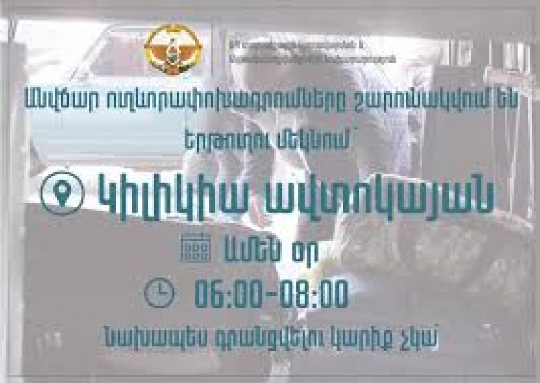 «Машины отправляются с Ереванского автовокзала Киликия в 06: 00-08: 00», - говорится в распространенном сообщении.