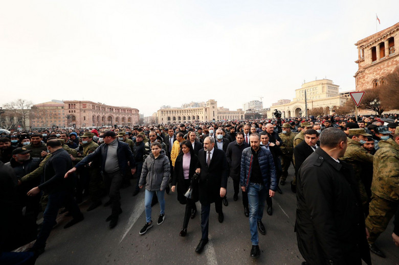 25 февраля внутриполитическая температура в Армении резко повысилась. И учитывая, что ситуация была уже горячей, она практически приближалась к критической степени кипения. После заявления Генштаба сложился внутриполитический тупик. В ответ на требование об отставке премьер-министра, Никол Пашинян на Площади Республики озвучил требование об отставке начальника Генштаба Оника Гаспаряна, отметив, что либо президент Армен Саргсян подпишет указ о лишении должности, либо сам Оник Гаспарян должен уйти по собственному заявлению. На самом деле Никол Пашинян поставил перед внутриполитическим выбором не только Оника Гаспаряна, поскольку его тот или иной выбор будет иметь внутриполитический контекст, но и президента Армена Саргсяна, который откладывает подписание лишения должности начальника Генштаба.