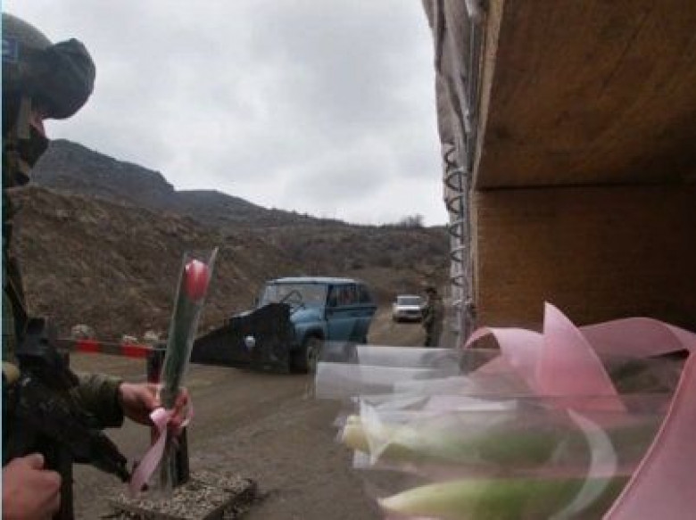 Российские миротворцы подарили цветы жительницам Карабаха и поздравили их с 8 марта