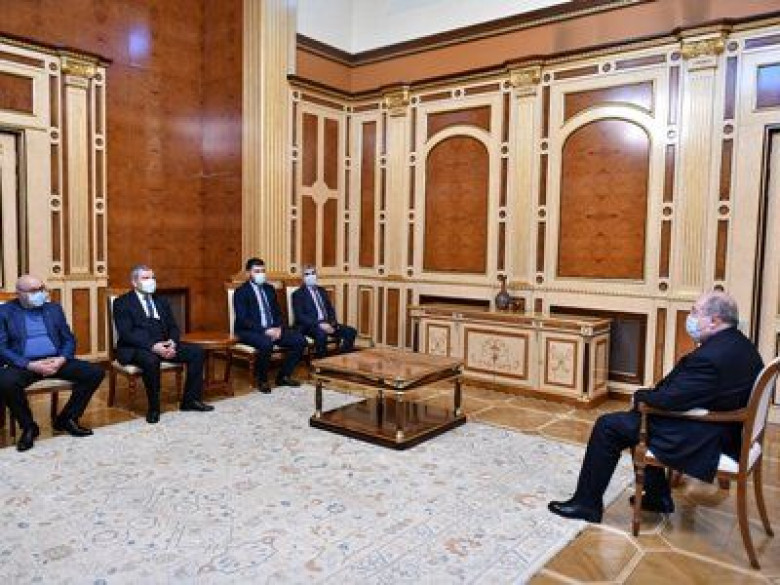 ПолитикаПрезидент Армении Армен Саркисян сегодня принял председателя партии «Республика» Арама Саркисяна, учредителя и председателя Объединенной Трудовой партии Гургена Арсеняна, соучредителя партии «Суверенная Армения» Давида Санасаряна и председателя партии «Справедливая Армения» Норайра Норикяна.