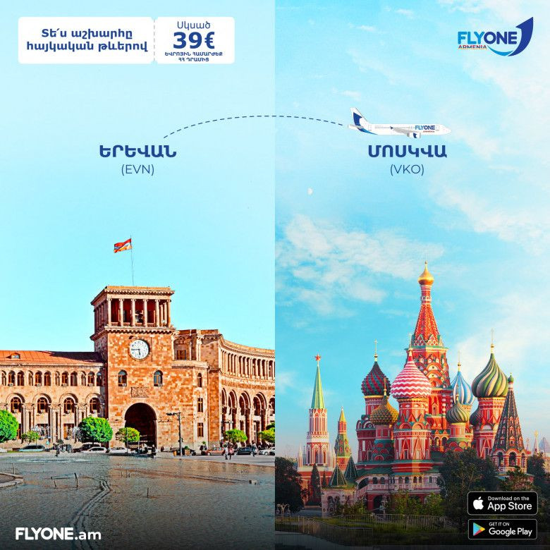ОбществоС разрешения авиационных властей Армении и Российской Федерации авиакомпания FLYONE ARMENIA с 1 марта этого года начинает выполнение регулярных прямых рейсов по направлению Ереван - Москва - Ереван.