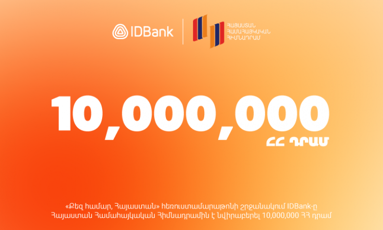 ОбществоВ этом году IDBank присоединился к 27-му телемарафону Всеармянского фонда «Айастан», сделав значительное пожертвование в размере 10 000 000 драмов. Все программы, представленные на телемарафоне, имеют первостепенное значение для нашей страны и полностью соответствуют его политике корпоративной социальной ответственности.